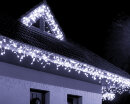 Варианты дизайна для дома или бизнесаРассмотрим применение светодиодной бахромы для разных видов светового дизайна. Если необходимо создать праздничное оформление для новогодних, рождественских праздников или для праздника, который отмечается зимой, лучший вариант – выбрать белое светодиодное освещение. Подходит для такой задачи светодиодная гирлянда «Бахрома теплая белая» на 9 метров, может мерцать теплым, белым светом, напоминающим отблески снега. Нити световой бахромы спускаются вниз на 90 см. 180 лампочек с белым мигающим освещением поддержат уютное оформление дома, кафе, магазина. Выполненный с каучуковым усилением провод-основа белого цвета, сольется со световым исполнением. Если нужно освещение по всему контуру здания, лучше всего использовать такой вид как светодиодная бахрома белая в бобине на 60 м. Нити этой гирлянды спускаются на 60 см вниз и могут обволакивать своим праздничным освещением практически весь контур жилого дома, коммерческого здания. Гирлянда обладает приятным, «морозным» синим свечением. Опционно может быть дополнена контроллером пуска светодиодов, то есть можно создать мерцание в заданном ритме. Несколько другое настроение создается гирляндой уличная «бахрома» мультикаучук. В этой версии гирлянды, провод-основа – выполняется разноцветным. Трехметровая конструкция – компактная, но очень яркая и имеет встроенный контроллер мерцания светодиодов. Даже расположив гирлянду в одном окне, можно получить привлекательный, нарядный световой объект, который создаст праздничное настроение. Питание, монтаж светодиодной бахромыДля работы светодиодной гирлянды используется обычное питание от бытовой сети 220 вольт. То есть для подключения можно применять обычную бытовую сеть. Монтаж гирлянды производится закреплением на фасаде провода. Он крепится стандартными зажимами винтами-саморезами или креплением на гибкой основе фасадной части. Такие монтажные работы можно выполнить за несколько часов, предварительно продумав подвод питания гирлянды. Для создания праздничного настроения, яркой визуализации рекламы выгодно и удобно использовать светодиодную бахрому. Она всепогодна, использует мало энергии и может применяться много сезонов. |