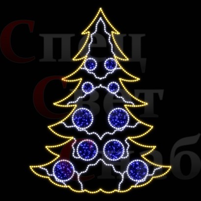 Световое панно: Ель с синими шариками золотистая 3м
